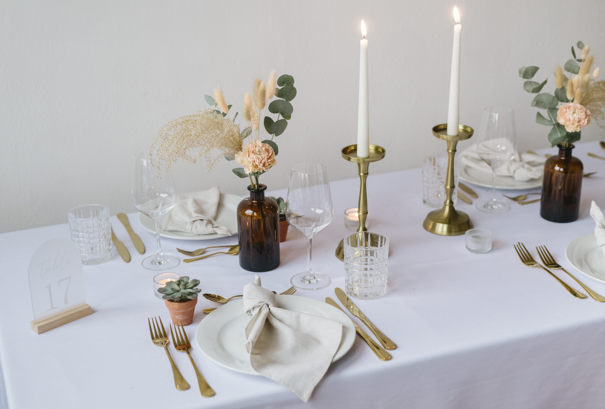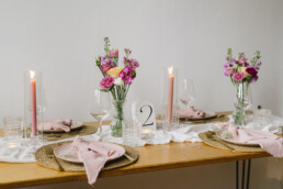 Wir beraten euch gern und planen bis ins kleinste Detail mit euch! Wir bereiten alles vor, vom Serviettenknoten bis zu euren Blumenarrangements und stellen euch alles abholbereit zusammen… Ihr dekoriert nur noch eure Location…